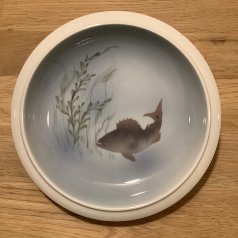 Royal Copenhagen skåle i hvid og guldfarvet porcelæn. Skålene har et bølget design inspireret af muslingeskaller og er velegnede til servering eller dekoration.