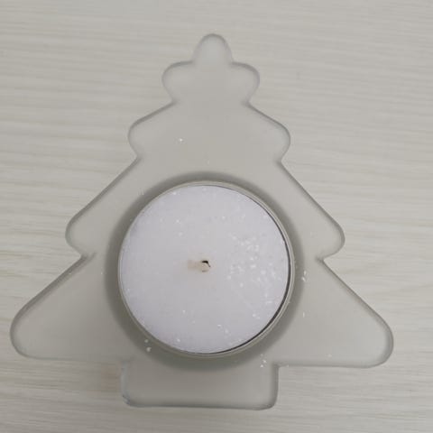Lille fyrfadsstage i matteret glas med englemønster. Lysestagen har guldkant, men den er falmet med årene - se billeder. Ca. 6 cm høj og 7 cm i diameter. Vintage, fra 80'erne eller 90'erne.