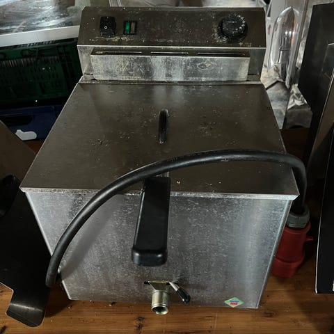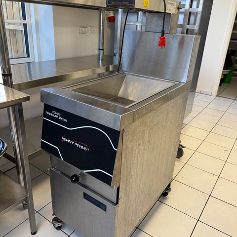 Lincat Double Fryer i rustfrit stål med to friturekurve. Kommerciel model designet til professionel madlavning. Udstyret med temperaturkontrol og låg til hver enhed. Velegnet til brug i restauranter eller cateringmiljøer.