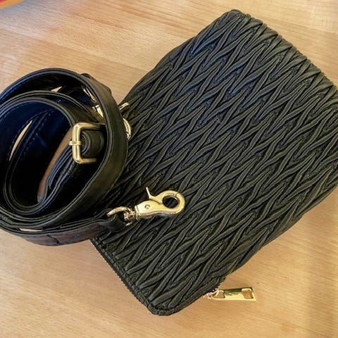 Forsiden af tasken - rem er ikke pakket ud - kortholder medfælger