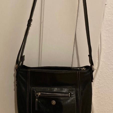 Adax skuldertaske i sort læder designet til kvinder. Tasken har en justerbar rem og en lukning med drejelås. Indeholder flere rum inklusive et med lynlås, egnet til opbevaring af personlige ejendele. Ny pris kr. 999 sælges billigt