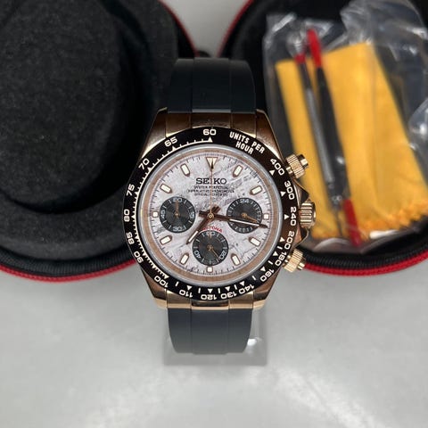 Et unikt Seiko Mod inspireret af det ikoniske Daytona-design – denne gang med en meteorite dial, der giver et eksklusivt og luksuriøst udtryk.