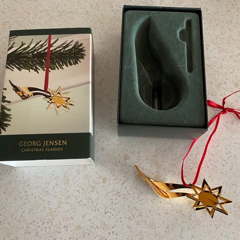 Fint juletræs ophæng fra Georg Jensen, dog mangler snoren, og kassen er lidt itu. Selve ophænget er i fin stand