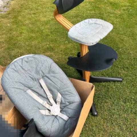Nomi stol i sort plast og olieret eg inkl tilbehør: