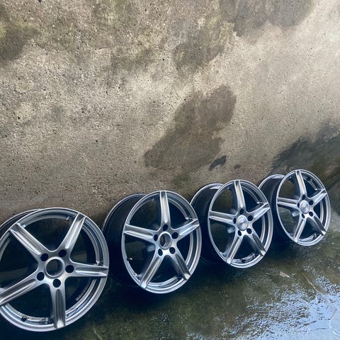 4 stk 17" alufælge fra 2019 med dæk men kassen er sprunget på det ene men kan være de andre er gode nok men sælges som defekte dæk 1000 for fine fælge, har sat på en vw Tiguan