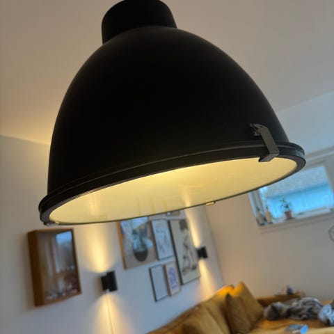 Ilva Loftlampe med træarmatur og 6 hængende pærer. Lampen er sort med trædetaljer og har et moderne, industrielt design. Passer til opholdsrum og spisestue, hvor der ønskes en dekorativ og funktionel belysning.
