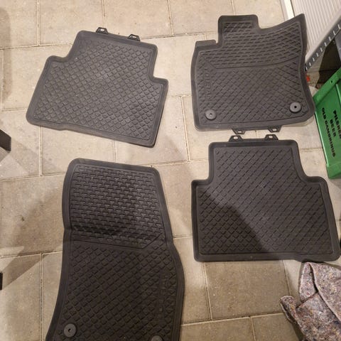 Måtterne er fremstillet af gummi, hvilket gør dem holdbare og nemme at rengøre.