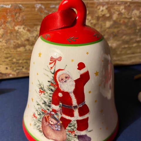 juleklokker i messing, gamle glaskugler og julepynt fra Daells Varehus.