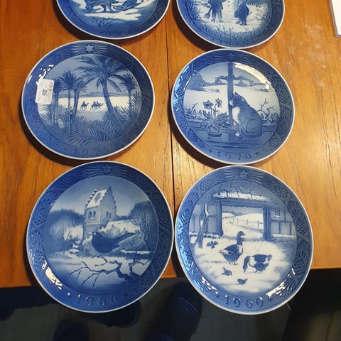 12 styk jule platter år 1978-1989. Sælges til 130kr pr styk. Se billeder for motiv og årstal.