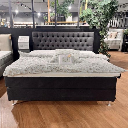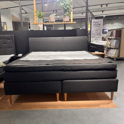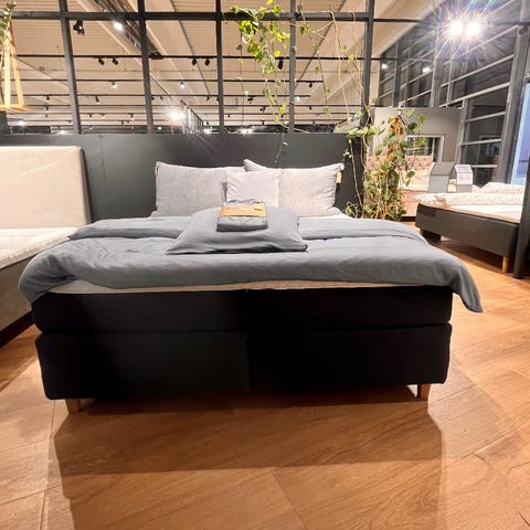Hos SENG Viborg skal vi gøre plads til nye modeller, og derfor skal vi af med denne lækre Dunlopillo Passion Kontinentalseng samt gavl. Sengen har været udstillingsseng i butikken, og købes som beset - ingen har overnattet i sengen. Vores udstillingssenge sælges inkl. ben og gavl som vist på billedet.