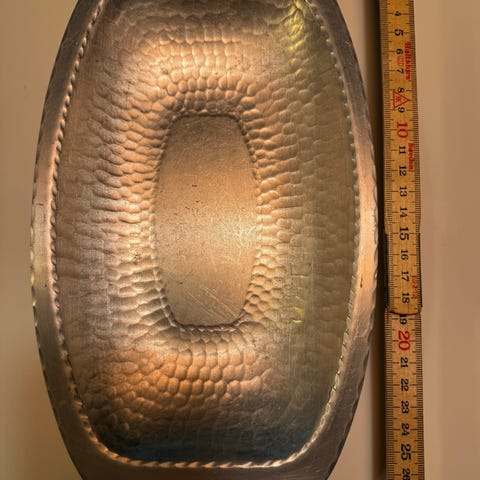Flot Tin sæt bestående af fad 17 i dia - kande H 12 cm - 6 drikkebægre H 3 cm.