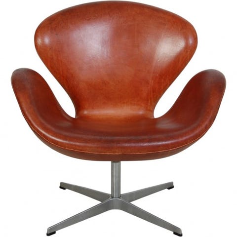 Arne Jacobsen Svane stol betrukket med nyt Whisky farvet semi anilin læder. Stolen er fra 2007, men er blevet nybetrukket med nyt læder og skum. Stolen fremstår i flot stand med enkelte mærker og ridser på stellet. Stolen har et drejeligt stel af børstet aluminium. •Designer: Arne Jacobsen •Producent: Fritz Hansen •Produktions år: 2007 •Model: Svane stol •Mål: Højde 77 / Bredde 74 / Dybde 68 / Sædehøjde 39 Cm •Materialer: Whisky farvet semi anilin læder, og stel af børstet aluminium •Funktioner: Drejefunktion •Stand: Brugt Arne Jacobsen Svane stol i whisky classic læder.