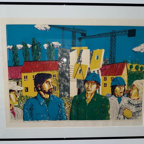 2 pindsvin om bold, med signatur Lasse Mortensen, hjælp hvis du ved mere eller jeg læser forkert.