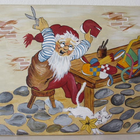 Acryl-malerier på træklods, str. 23 x 14 x 4 cm, malet med JULEMOTIVER på alle flader.