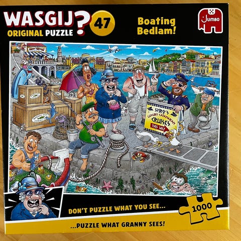 To rigtig fine puslespil fra Wasgij, hvor det samlede motiv ændrer sig ift. æskens motiv, spændende puslespil!