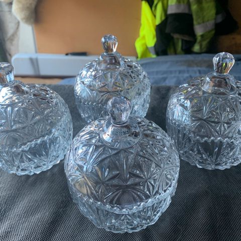 Krystalglas opbevaringsæske med låg, firkantet form, gennemsigtigt materiale med dekorative mønstre. Velegnet til opbevaring af små genstande.askebæger med æske, håndlavet krystal