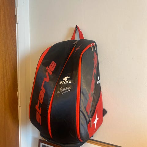 Plads til two padelbat, stort rum i midten og seperat rum til sko. Lille rum til nøgler mv