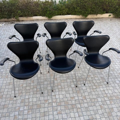 Arne Jacobsen 6 styk 7er stole i cognac læder