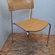 Fritz Hansen Runner-stolen, designet af Kasper Salto i 1997, er en elegant og let stabelbar stol med sort lædersæde og krom stel. Ryglænet i formspændt træ giver både komfort og et tidløst udtryk. Ideel til møderum, kantiner og større arrangementer.