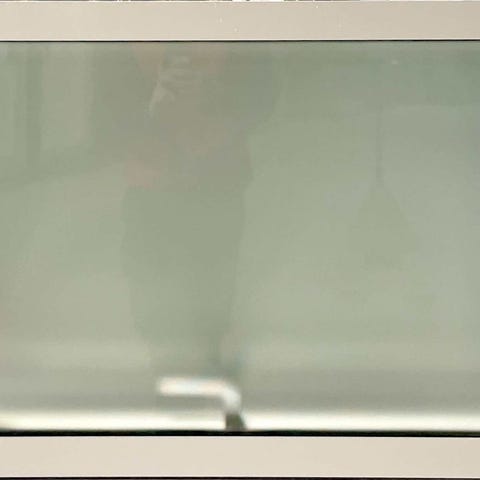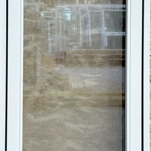 Tophængt badeværelsesvindue i træ, 2 lags matteret glas