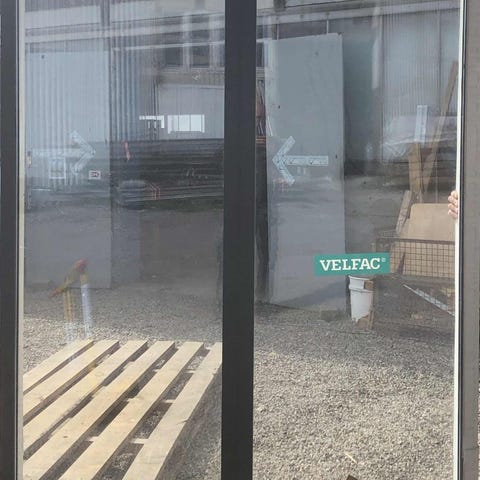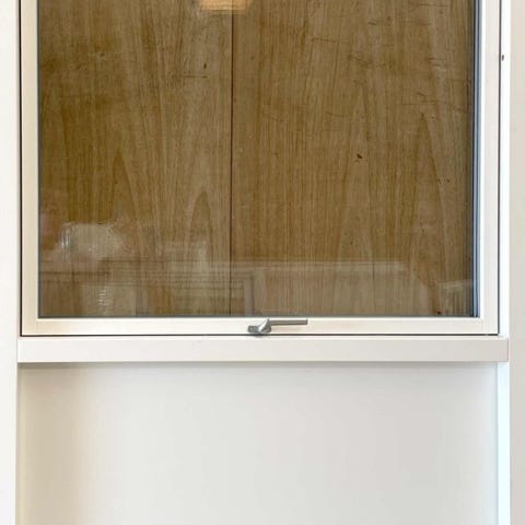 Tophængt træ/alu vinduesparti, 2 lags glas