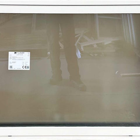 Tophængt vindue i træ/alu med 3 lags lavenergiglas og matteret glas.