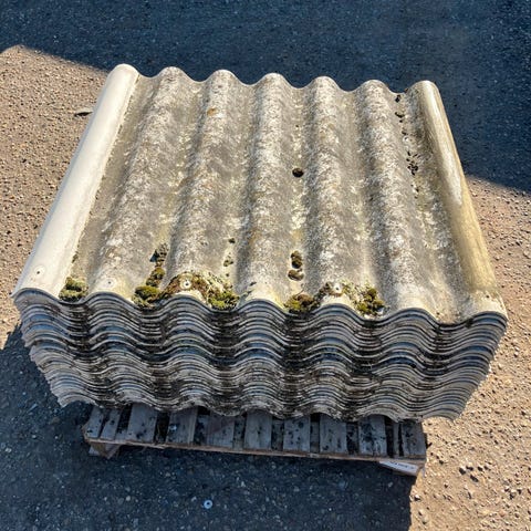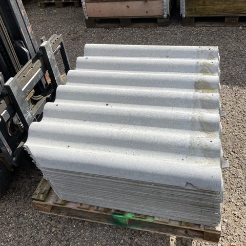 Bølgepladerne er af fibercement, de er inspiceret og klargjort til genbrug.