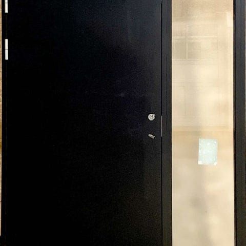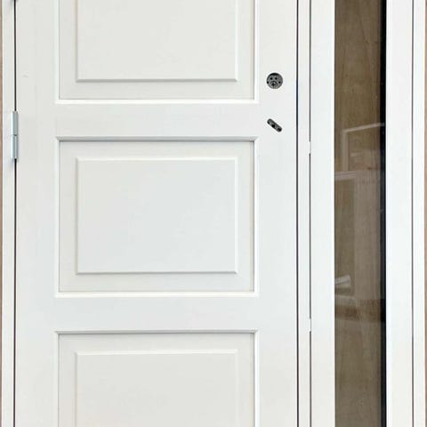 Ny og ubrugt træ/alu facadedør med sideparti og 3 lags lavenergiglas.