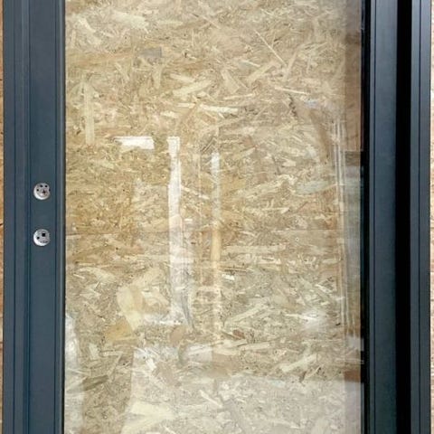Ny og ubrugt træ/alu facadedør med sideparti og 3 lags lavenergiglas.