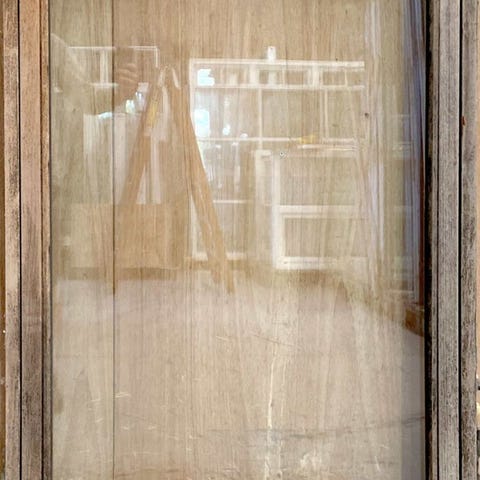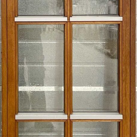 Fastkarms maghoni vindue, med 2 lags glas.