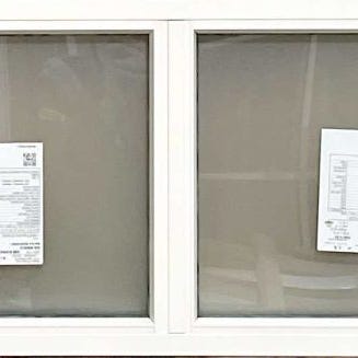 Ny og ubrugt tophængt vindue i træ/alu med 3 lags lavenergiglas og matteret glas