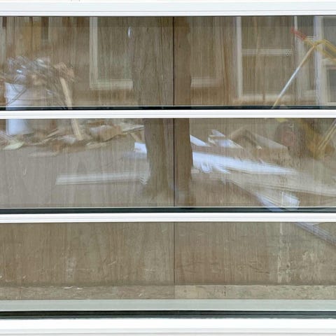 Ny og ubrugt fastkarms vindue i træ med 3 lags matteret lavenergiglas (Ug-værdi 0,5 til 0,7)