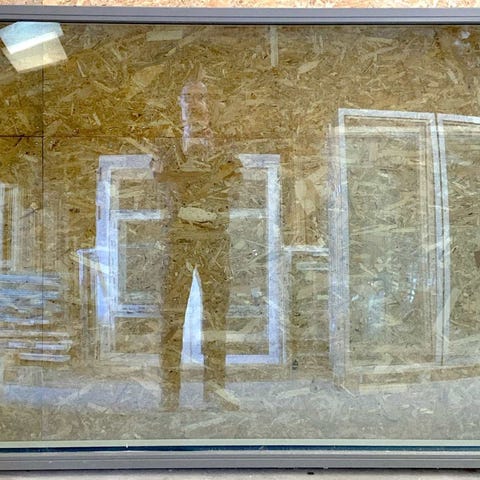 Fastkarms vindue i træ/alu, med 2 lags glas fra Rationel.