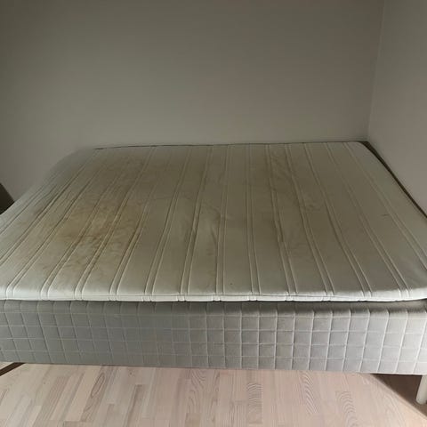 IKEA seng med gavl. Den er brugt, men fremstår i god stand. Selve madrassen er rigtig pæn. Der kan eventuelt også følge en topmadras med. Den er der dog nogle pletter på. Den er skilt ad og skal afhentes på 2. Sal.