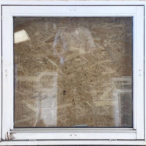 Tophængt vinduesparti i træ med 2 lags energiglas.