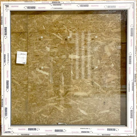 Ny og ubrugt Rehau plast topstyret vindue med 3 lags lavenergiglas og udluftningsventil.