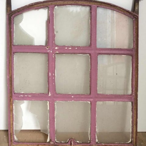 Jernvindue med blyindfattede glas med hårdtstræ`s glasliste.