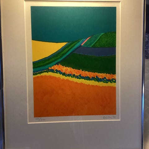 Litografi, Henrik Buster Bruun, b: 47 h: 64, Litografier signeret" Buster 78, 525/620", i guldskifteramme. Billedet hat to mindre skjolder nederst, men kan sagtens blive fint med en nyindramning med pass.