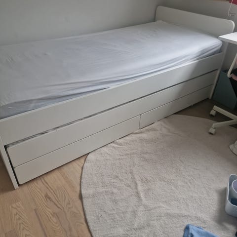 Sengen er meget lidt brugt. Der er fin madras og sengekant med