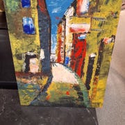Oliemaleri i moderne stil og flotte farver - i ramme.