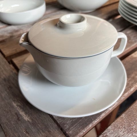 2 Blåkant Royal Copenhagen låg til sovsekande /sovseskål eller bouillonkopper. Diameter 12 cm. Har aldrig været brugt.