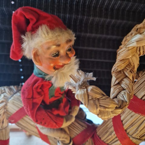 Flot sjælden gammel nisse tilbyde indendørs eller udendørs brug. Nissen læner sig op af en lygtepæl og der er lys i latterne. Der følger en ekstra latterne med. Nissen har en høj værdi og bliver kun dyrere Nissen er 80-82 cm høj. Som udgangspunkt skal sen afhentes i Kolding. Bemærk jeg sælger i alt 3 af disse sjældne nisser og dette er en af dem.