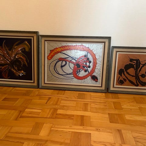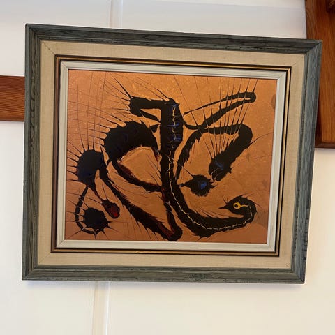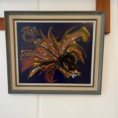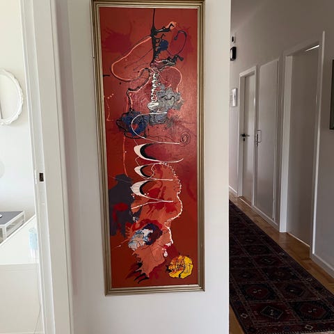 Smukt maleri i moderne stil og farver, i ramme.