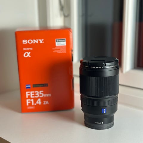 Sony FE 50mm F1.4 ZA objektiv med Carl Zeiss optik. Objektivet har en brændvidde på 50 mm og en maksimal blænde på f/1.4, hvilket gør det velegnet til fotografering under forskellige lysforhold. Objektivet er designet til Sony E-mount kameraer og har en filterstørrelse på 72 mm. Materialet er robust og lavet til at levere høj billedkvalitet.