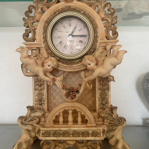 Højde: 2 m, bredde (på sit bredeste): 45 cm, dybde: 16,5 cm. Selve viserne går vidst ikke så godt, så skal fikset 😄