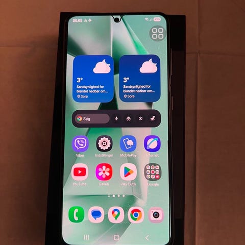 Samsung Galaxy S21 5G smartphone med 128 GB intern lagerplads. Telefonen har en sort farve og leveres med original oplader og sort læderetui. Enheden understøtter 5G-netværk og har en brugervenlig grænseflade. Telefonen er velegnet til daglig kommunikation, internetbrug og multimedieoplevelser.