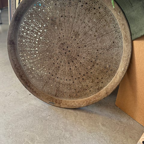 ,,Guldfarvet,, fad med plads til at lave en dekoration eller brug det til frugt fad. Incl.4 lysestager til bloklys.