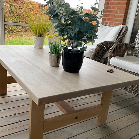 Bordet har tidligere været sæbebehandlet, men er nu helt ubehandlet, så det kan stå i natur træ, sæbebehandles, eller olieres efter eget valg