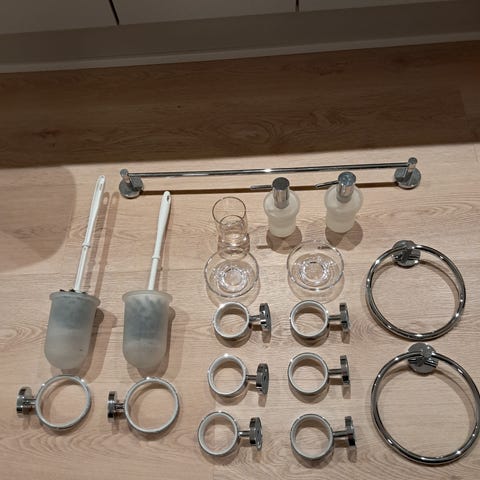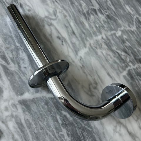 Grohe Essenstials Cube badeværelsestilbehør i krom bestående af to håndklædestænger 60 cm., en toiletpapirholder og en reserverulleholder.