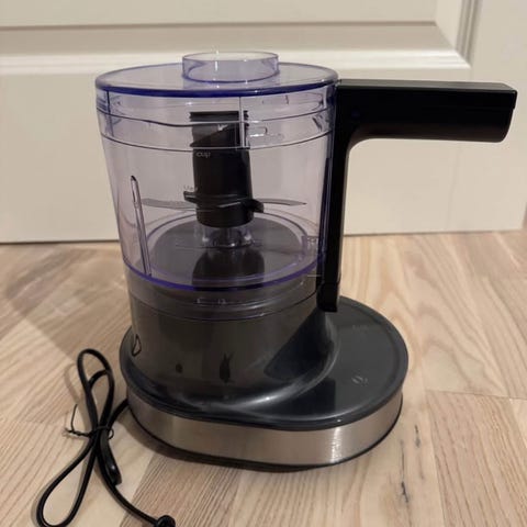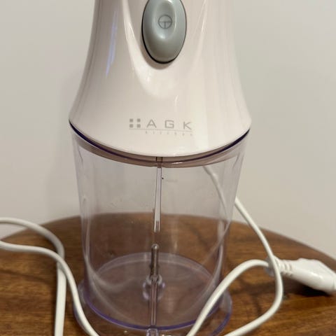 Den bruges til at hakke grøntsager, frugter, nødder og lignende ved at dreje på håndtaget, som får knivene til at rotere.